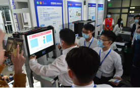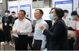 入围校选拔赛的三个作品:新时代背景下红色文化多元化传承研究——基于广东省潮州市红色文化传承的调研(B类)、见力仪-力量测量评估与分析系统(C类)、“EasyMart ONE”-基于VLC室内定位的无人超市AI(C类)及其它展品进行深入了解,并与同学们亲切地交流。评委老师对参赛团队进行提问,认真地对每个作品打分评估。久久小说