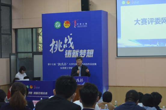 授旗仪式结束后,主持人对本届“挑战杯”备赛情况进行了介绍,并邀请本次大赛的评委代表广东省社会科学院原企业所所长林平凡进行网评点评。本次大赛共有210件作品报名参加,其中A类21件,B类118件,C类71件。经过各二级学院遴选报送以及校外评审专家网评,共评选出59件优秀作品进入学校选拔赛决赛。评委代表林平凡对本次大赛进行点评并提出建议,他强调扎实的专业知识是创新创业项目的基础以及对作品进行精心打磨的重要性。