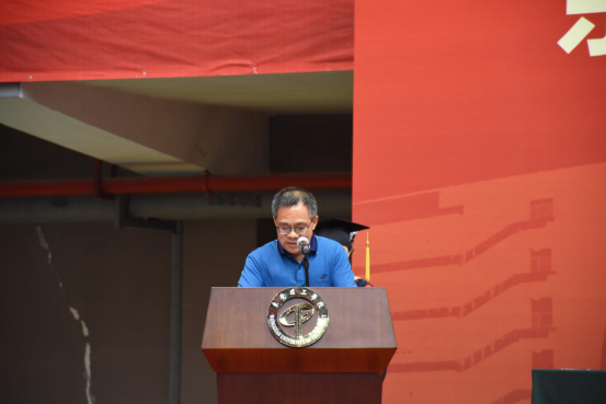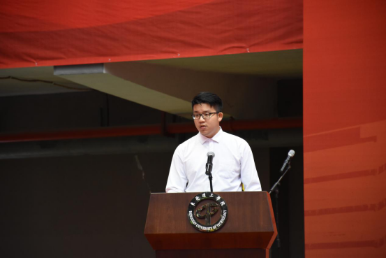 2019届毕业生黄政作为毕业生代表发言,表示一定铭记恩师的教导和“学而知不足”的校训,运用所学的专业技能,书写灿烂人生。