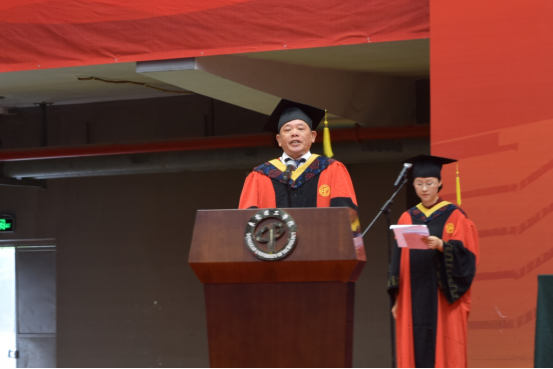 孙元章院长致辞,一方面对圆满完成学业、即将告别母校踏上新的人生征途的毕业生表示祝贺,另一方面对参加毕业典礼的领导、老师和家长们表示感谢。