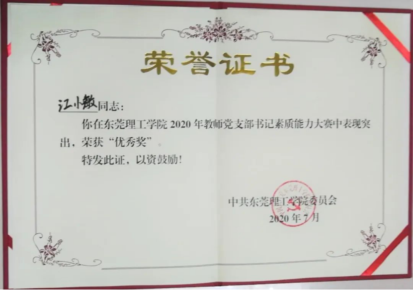 电子工程系教师党支部书记赵晓芳获得二等奖,通信工程系教师党支部书记江小敏获得优秀奖。