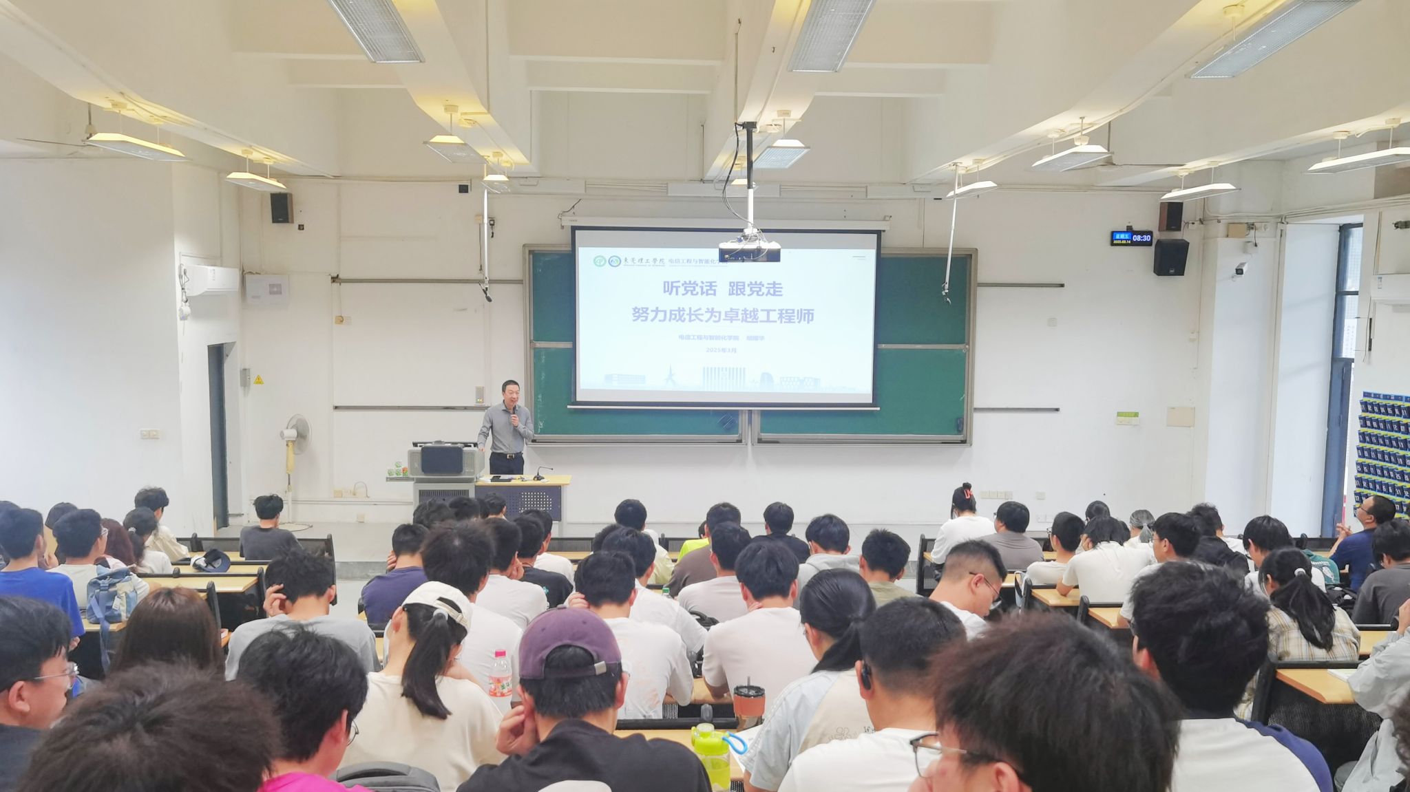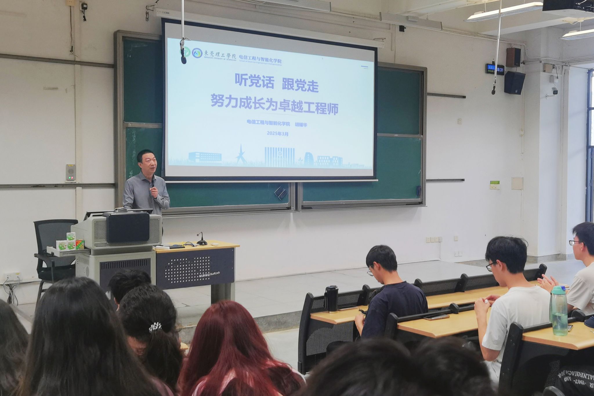 院长胡耀华于松山湖校区6E-208教室,为同学们讲授了题为“听党话 跟党走,努力成长为卓越工程师”的思政课。其深入阐释了新时代工程师所肩负的使命与担当,为青年学子们清晰地指明了前行的奋斗方向。
