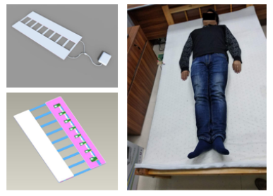 3.睡眠质量监控系统:采用2排16个陶瓷压力传感器;测量呼吸与心率(较难);测量翻身与离床状态等;监测数据实时上传;目标对象为老年人、病人或儿童;开发Web端监控平台系统和睡觉健康大数据管理与分析系统。测试实物如图3所示。