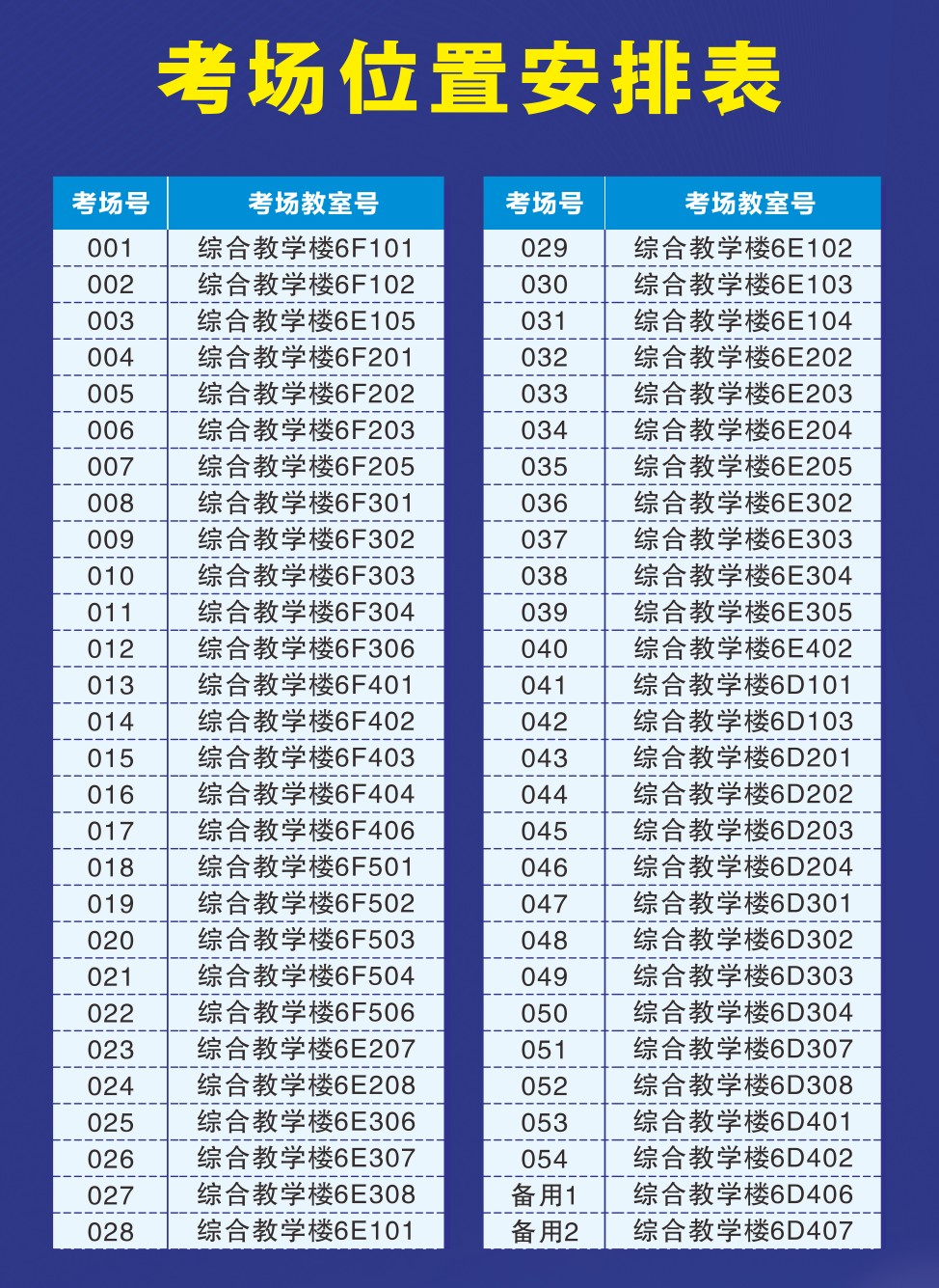 (松山湖校区),具体考场安排表详见下图。