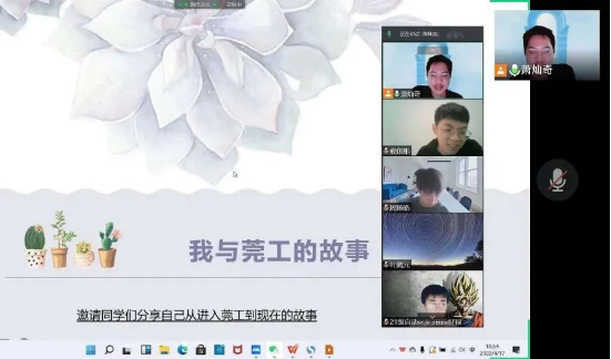 21级自动化3班举办了校史知识竞赛并邀请同学们讲述属于自己的莞工故事,大家饱含深情畅所欲言。21智能制造2班的同学们欣赏了由莞工学子演唱的校园歌曲《心中的莞工》。20机器人1班的同学每位同学打开摄像头发言,表达对学校30年校庆的祝福。