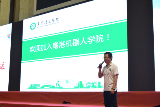 粤港机器人学院(简称机器人学院)招新宣讲会在体育馆召开。宣讲会由电子工程与智能化学院副院长任斌教授主持,机器人学院主任丁文霞教授、实验室胡亚伟老师、陈伟聪老师等三位老师分别进行了介绍。