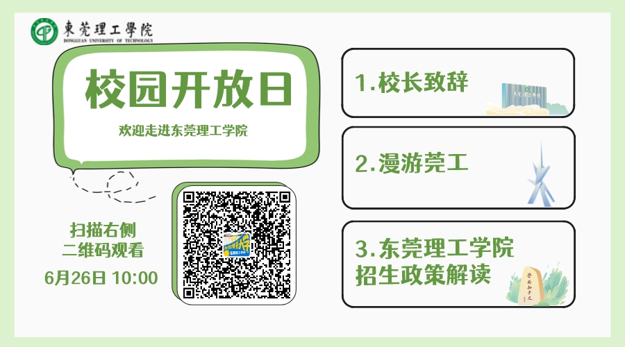 为了让广大考生、家长更直观地感受莞工学子学习生活的日常,学校定于2022年6月26日开展线上校园开放日,主持人带你漫游莞工,一起走进莞工实验室、智慧教室、学生宿舍、饭堂等学习生活场所,两校区的打卡点一个都不放过,还带你一起云赏莞工荔枝。